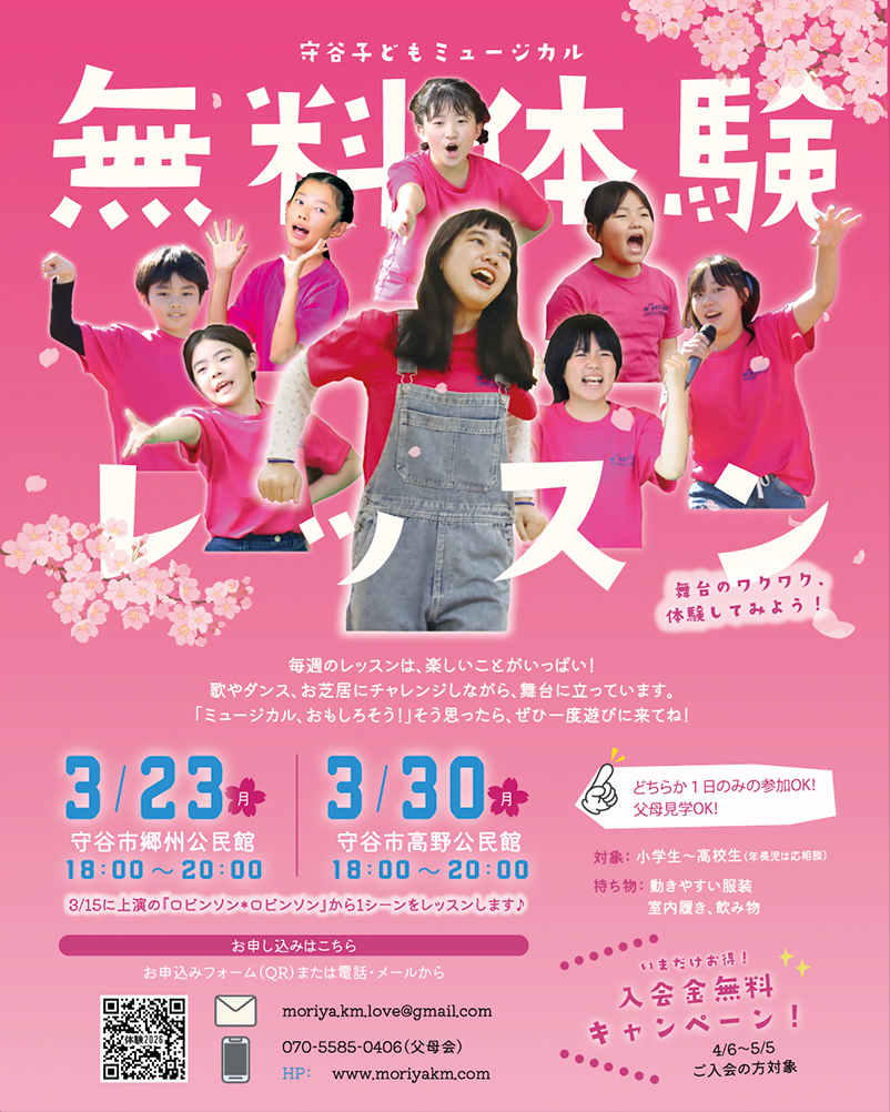 ぜひ、守谷子どもミュージカルのレッスンを見学・体験にいらしてください